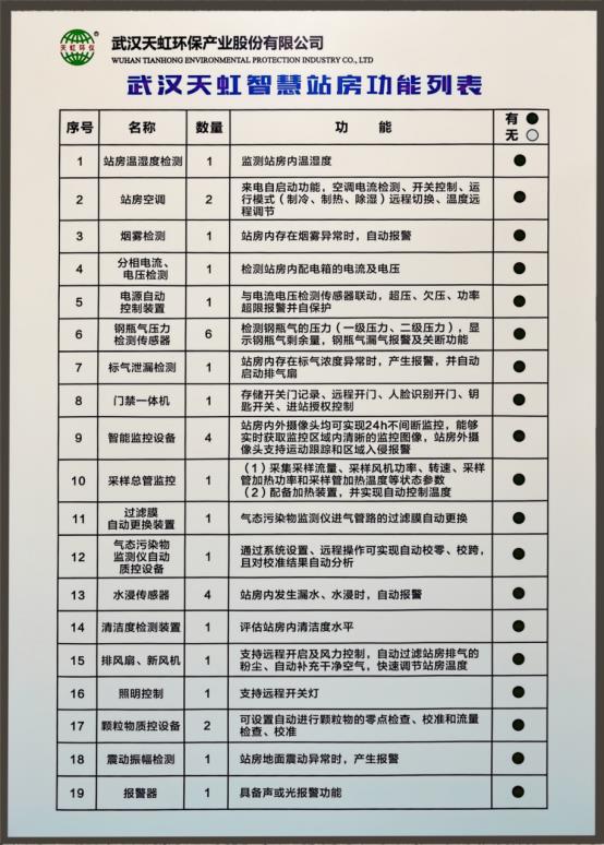 自6月份開始,便時??梢钥吹剿麄冇懻摲桨浮⒀芯考毠?jié)、復看總站要求、實戰(zhàn)安裝測試,同時不忘實地考察研究其他單位的建設情況。無論下班后,還是星期天,總能在站房內(nèi)外看到一群忙碌的身影,在如此短時間、高溫度的客觀條件下,大家齊心協(xié)力最終在7月14日完成了整體站房建設。智慧站房除常規(guī)功能外,還包含19項自動化控制功能,多于總站要求的必配項??蓪崿F(xiàn)遠程開門、遠程開關燈、站房溫濕度監(jiān)測、站房空調(diào)自控、站房清潔度及震動監(jiān)測、站房煙霧及水浸監(jiān)測、電源檢測及自控、氣瓶壓力及泄漏監(jiān)測、站房內(nèi)外環(huán)境實時監(jiān)控及報警、采樣總管參數(shù)監(jiān)控、氣態(tài)監(jiān)測儀過濾膜自動更換、氣態(tài)監(jiān)測儀自動質(zhì)控、顆粒物質(zhì)控等。