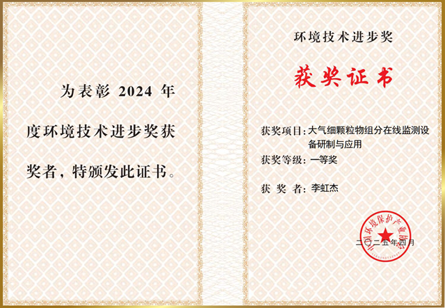 中國環(huán)境保護(hù)產(chǎn)業(yè)協(xié)會根據(jù)《環(huán)境技術(shù)進(jìn)步獎獎勵辦法(試行)》的規(guī)定,經(jīng)過提名、初評、終評、審定、公示等程序后,于2025年6月發(fā)布了2024年度環(huán)境技術(shù)進(jìn)步獎獲獎名單。其中12個項目獲得一等獎,27個項目獲得二等獎。我公司與中國環(huán)境監(jiān)測總站、北京大學(xué)等單位共同申報的“大氣細(xì)顆粒物組分在線監(jiān)測設(shè)備研制與應(yīng)用”項目榮獲一等獎。