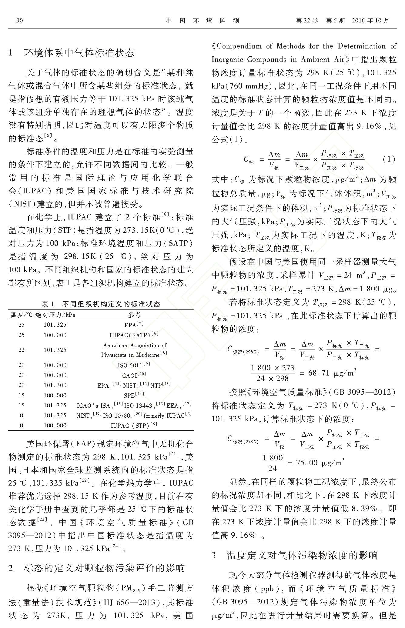 空氣質(zhì)量監(jiān)測中標準狀態(tài)對測定結(jié)果的影響及建議