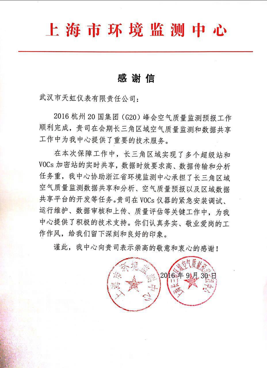 武漢天虹環(huán)保產(chǎn)業(yè)股份有限公司受?chē)?guó)家環(huán)保部委托,派出TH-300B VOCs在線監(jiān)測(cè)系統(tǒng)參加G20峰會(huì)長(zhǎng)三角區(qū)域環(huán)境空氣VOCs自動(dòng)監(jiān)測(cè),負(fù)責(zé)上海淀山湖空氣自動(dòng)站,江蘇宜興市監(jiān)測(cè)站空氣自動(dòng)站,安徽蕪湖市監(jiān)測(cè)站空氣自動(dòng)站三個(gè)站點(diǎn)的VOCs在線監(jiān)測(cè)工作,圓滿(mǎn)完成了各項(xiàng)任務(wù)。國(guó)慶節(jié)前,我公司收到了負(fù)責(zé)這次保障工作的上海市環(huán)境監(jiān)測(cè)中心和上海長(zhǎng)三角區(qū)域空氣質(zhì)量預(yù)測(cè)預(yù)報(bào)中心聯(lián)名發(fā)來(lái)的感謝信,充分肯定了我公司的工作人員,在G20峰會(huì)長(zhǎng)三角區(qū)域環(huán)境空氣VOCs自動(dòng)監(jiān)測(cè)期間儀器安裝調(diào)試、運(yùn)行維護(hù)、數(shù)據(jù)審核和上傳、質(zhì)量評(píng)估等關(guān)鍵工作中的認(rèn)真務(wù)實(shí)、敬業(yè)愛(ài)崗的工作作風(fēng),為中心提供了積極的技術(shù)支持。TH-300BVOCs在線監(jiān)測(cè)系統(tǒng)發(fā)揮了重要作用,在線監(jiān)測(cè)的VOCs項(xiàng)目最多。