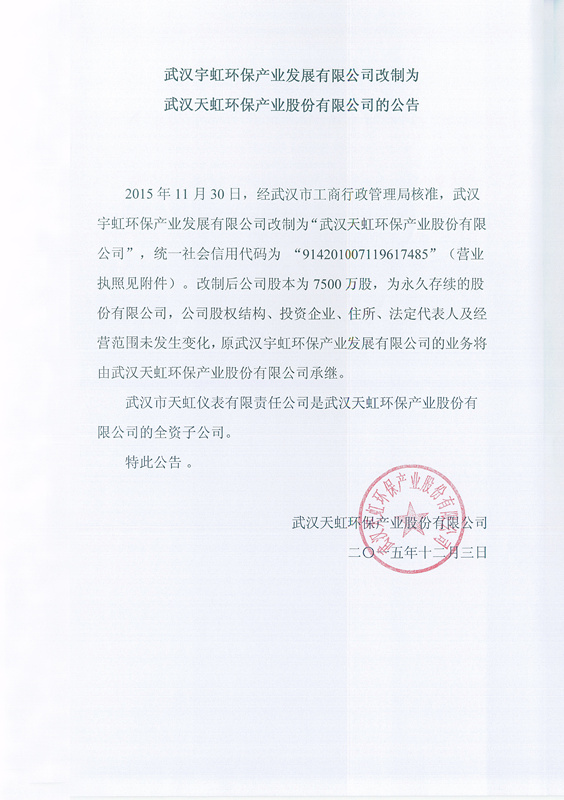 公司改制重要公告